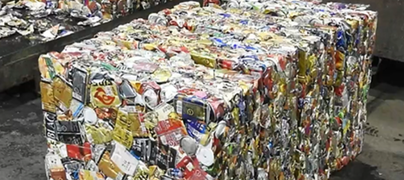 アルミ缶、スチール缶、ペットボトルは、それぞれ分別された後にそれぞれの運搬しやすい大きさにプレスしていきます。ペットボトルは、ラベルを剥がしてからプレスを行います。アルミ缶・ペットボトルは柔らかく、比較的プレスしやすいです。硬いスチール缶もきっちり運搬しやすい型にプレスを行います。